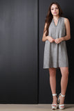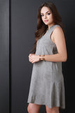 This dress features mineral wash fabric, v-neckline with tribal pattern trim, and relaxed fit. Accessories sold separately. Made in U.S.A. 100% Rayon.
