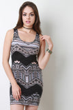 This trendy mini dress features a jersey knit fabrication with tribal print throughout, scooped neckline, sleeveless construction, and stretchy sculpture fit. Accessories sold separately. Made in U.S.A. 96% Rayon, 4% spandex.