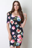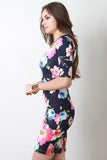 This cute floral print pattern, half sleeves, scoop neckline, back vent, body con fit, center back zip closure, knee length hemline and a stretch knit fabrication. Accessories sold separately, Made in U.S.A. 95% Polyester, 5% Spandex.