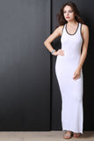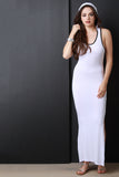 This maxi dress features soft jersey knit, scoop neckline, attached hood, side slit, and open back. Accessories sold separately. Made in U.S.A. 95% Rayon, 5% Spandex.