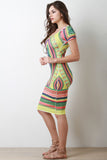 This boho tribal kaleidoscope print throughout, scoop neckline, short sleeves design, and stretchy sculpture fit. Accessories sold separately. Made in U.S.A. 95% Polyester, 5% Spandex.