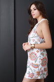 This shift dress features floral pattern, tassel fringe trim, sleeveless construction, criss-cross back, and lining. Accessories sold separately. Self:: 100% Cotton. Lining: 100% Rayon.