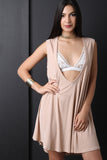 This dress features soft rib knit, plunge neck, sleeveless design, and slight high-low hemline. Accessories sold separately. Made in USA. 65% Modal, 35% Polyester.