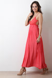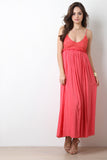 This flowy dress features a crochet lace top, sweetheart neckline, adjustable spaghetti straps, open back, and ruffled elasticized waist and skirt. Finished with under lining. Accessories sold separately. 50% Rayon, 50% Polyester.