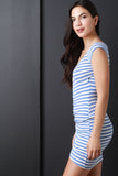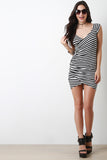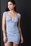 This bodycon dress features soft rib knit, striped design, surplice neckline, ruched side, and tulip hem. Accessories sold separately. Made in USA. 95% Rayon, 5% Spandex.