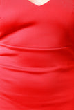 This sexy dress features a smooth stretchy knit fabrication, thin adjustable straps to a crisscross open back, peplum ruffle back detail, and back center slit. Finished with a midi-length hemline. Accessories sold separately. 95% Polyester, 5% Elastane.