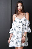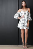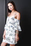 This dress features a v-neckline, cold shoulders, adjustable spaghetti shoulder straps, quarter-length bell sleeves, shift cut fit, floral pattern print, and fully lined. Accessories sold separately. 100% Polyester.