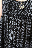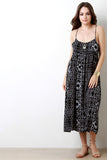 This cutesy dress features a textured woven fabric, geometrical shapes print pattern, and adjustable spaghetti straps. Finished with a midi-length hemline. Accessories sold separately. Made in U.S.A. 100% Rayon.