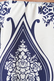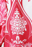 This chic shift dress features am off the shoulder neckline, woven fabrication, engineered floral and paisley print, three quarter ruffle sleeves, and a boxy loose silhouette with a mini length hem. Accessories sold separately. Made in U.S.A. 100% Polyester.