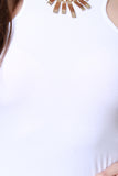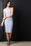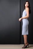 This casual dress features a jersey knit fabrication, round neckline, sleeveless fit, and racerback. Finished with a midi-length hemline. Accessories sold separately. Made in U.S.A. 94% Cotton, 6% Spandex.