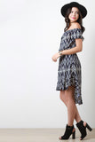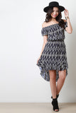 Tribal Off-The-Shoulder Ruffle Hem High Low Dress