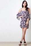 This shift dress features a cold shoulder design, scoop neckline, spaghetti straps, a lace up open back keyhole, self tie back, loose fit boxy silhouette, and a mini length hemline. Accessories sold separately. Made in U.S.A. 100% Rayon.