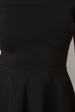 This simply cute skater dress features a soft stretchy knit fabrication, off the shoulder neckline, and ruffled skirt finished with high-low hemline. Accessories sold separately. Made in U.S.A. 65% Rayon, 30% Nylon, 5% Spandex.