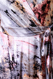 This eye-catching dress features a smooth stretchy knit fabric designed with spraypaint print pattern, surplice neckline, faux wrap styled, and M-slit front. Finished with a self-tie waist sash, cuffed longsleeves, and maxi-length hemline. Accessories sold separately. Made in U.S.A. 95% Polyester, 5% Spandex.