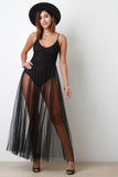 This bodysuit style construction, lace top, pleated mesh skirt, spaghetti straps, v neckline and bikini style bottoms. Accessories sold separately. Made in U.S.A. Self: 100% Polyester, Contrast: 95% Polyester 5% Spandex.