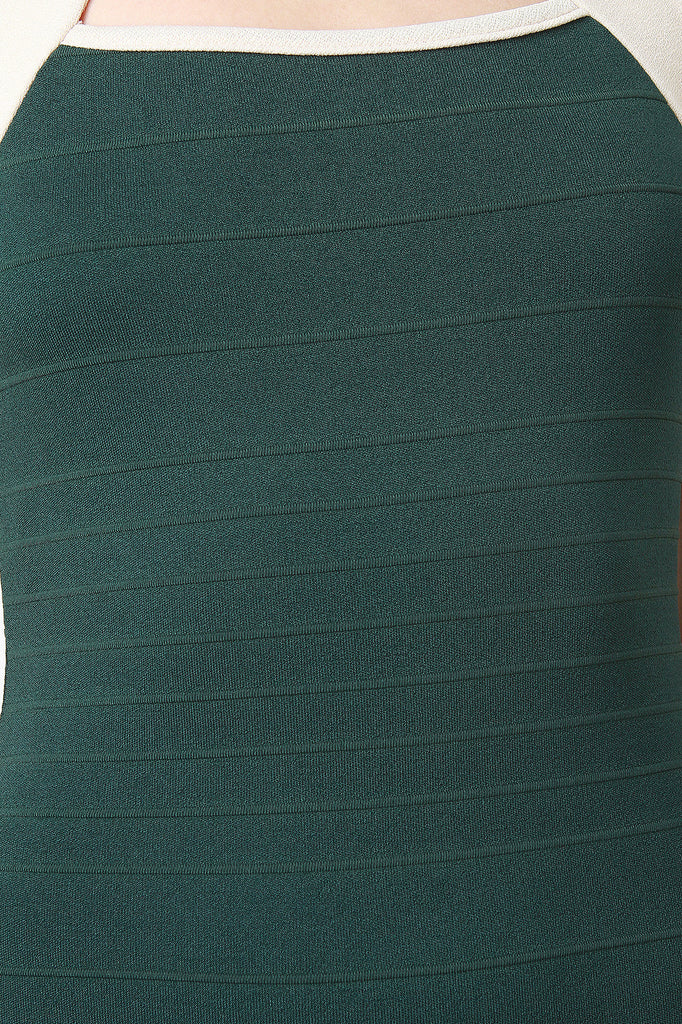 This eye-catching dress features a pleated knit fabric, two tone contrasting trim detail, thin shoulder straps, and front keyhole design. Finished with a midi-length hemline. Accessories sold separately. Made in U.S.A. 96% Polyester, 4% Spandex.