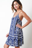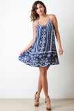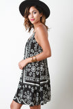 This lovely shift dress features a scooped neckline, sleeveless design, open back construction with contrast straps detail, and shift cut fit. Accessories sold separately. Self: 100% Polyester. Contrast: 100% Polyester. Lining: 100% Polyester.