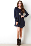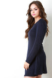 This dress features a patterned knit fabric, round neckline, longsleeve construction, and mini-length hemline. Finished with a rear zip-up closure and partial lining. Accessories sold separately. 95% Polyester, 5% Spandex.