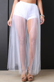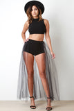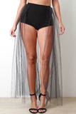 These hot shorts maxi features a high waisted design, elasticized band, and semi-sheer maxi length tutu train. Accessories sold separately. Made in U.S.A. 96% Polyester, 4% Polyester.