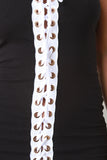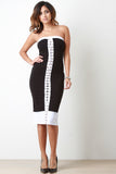 This strapless lace up front design with matte metallic grommets, contrast trimming, and stretchy sculpture fit. Accessories sold separately. Made in U.S.A. 95% Cotton, 5% Spandex.