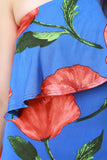 This cutesy dress features a smooth stretchy knit fabric, one shoulder design with ruffle detail, floral print pattern, and mermaid cut. Finished with a maxi-length hemline. Accessories sold separately. Made in U.S.A. 95% Polyester, 5% Spandex.