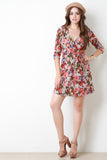 This long sleeve dress features a soft fuzzy knit fabrication, half sleeves, a surplice V neckline, faux wrap look, a line skirt with a mini length hemline. Accessories sold separately. Made in U.S.A. 95% Polyester, 5% Spandex.