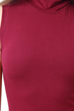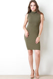This bodycon dress features a turtle neckline, sleeveless design, and stretchy sculpture fit. Made in U.S.A. Accessory sold separately. 95% Viscose Spandex, 5% Rayon.