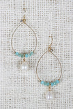 This dangle earrings feature multiple diamond cut stones, a faux pearl, gold wire finish and french hook backs.