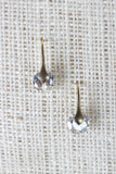 These elegant and simple earrings add glamour to any outfit. Featuring a solid hook from front to back with a captive faux diamond crystal in a loose setting.