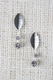 These cute earrings feature textured leaf shapes with two drop down rhinestones, finished with a post back.