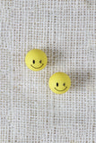 These quirky stud earrings feature a yellow sphere with a winking smiley face on it, finished with post backs.