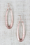 These simple earrings feature a dangle design, oval shape, brushed metal hammer detail, and fish hook backs.