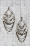 These dangle earrings feature an open tear drop shape, with multiple chains draped across for an edgier look. Finished with a french hook.