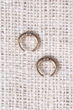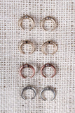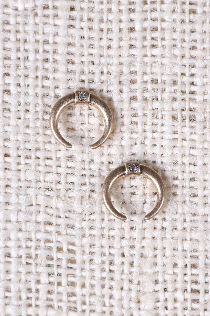 This set of earrings features 4 sets of different colored crescent shaped earrings with a rhinestone detail and a post back.