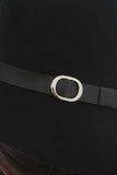 Featuring a wool main, pinched front, leatherette strap, and round brim. 100% Wool.