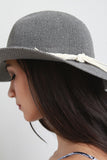 This summer hat is floppy hat silhouette with a straw design. Features a decor braided bow tie string. Finished with an interior ribbon lining.