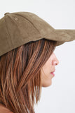 This cap has a classic baseball cap design, featuring 6-panels and curved brim. Adjustable strap at back. Vegan suede fabrication. 100% Acrylic.