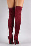 These pointy toe silhouette, soft faux suede upper, single sole, and stiletto heel. Finished with cushioned insole and partial side zipper closure for easy on/off.