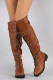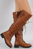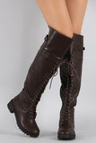 Dollhouse Round Toe Lace Up Combat Over-The-Knee Boots