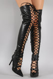 These fashion-forward pointy toe silhouette, cutout design with corset-style lace up detail, triple straps embellishment, and wrapped stiletto heel. Finished with cushioned insole and partial side zipper closure for easy on/off.