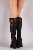 These feature a perforated vegan suede upper, peep toe silhouette, and chunky wrapped heel. Finished with cushioned insole and rear zipper closure for easy on/off.