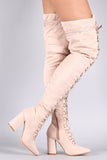 These trendy boots feature a corset lace up closure with ring accents, slightly square toe silhouette, and wrapped chunky heel. Finished with a padded lining and insole for comfort and partial side zipper fastener.