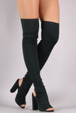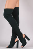 Peep Toe Fitted Chunky Heeled Over The Knee Boots