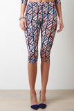 These soft knit leggings features a patterned print fabrication, elasticized waistband, and capri-length hemline. Accessories sold separately. Made in USA. 95% Polyester, 5% Spandex.