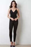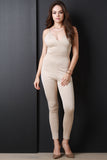 This tank jumpsuit features a v neckline with adjustable spaghetti shoulder straps, waist panel detail, and finished with taper-cut legs. Accessories sold separately. 95% Polyester, 5% Spandex.