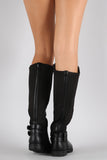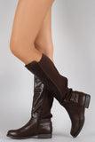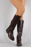 Bamboo Button Stretch Back Round Toe Riding Knee High Boots