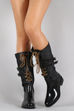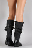 These boots feature a round toe silhouette, d-ring with lace up design, decorative buckle strap detail, and low block heel. Finished with cushioned insole, smooth interior lining, and full-length side zipper closure for easy on/off.