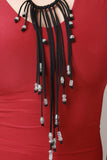 This piece of necklace with several knots around the main strand creating a fringe effect along with patterned beads in the ends of every strand.