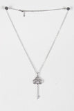 This lovely necklace features a cable link chain, Cubic Zirconia encrusted key shaped pendant, finished with an adjustable lobster hook closure.