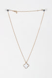 This simple charm necklace features thin cable link chain, a small clover charm with a faux pearl center and an adjustable lobster claw closure.